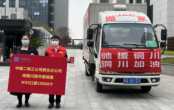3月24日,团市委、市青联联合中建科工集团西安公司、中建二局三公司西北分公司、中国中铁一局建安公司、中国中铁置业西北公司向铜川团市委捐赠N95口罩4万个,价值15.2万元。