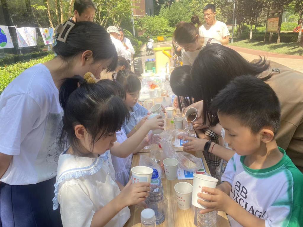 在前面代入式活动铺垫基础上,志愿者团队挑选出了几名小朋友,参与现场微缩版的“厨余堆肥和酵素制作”,指导小朋友们自己动手将厨余垃圾和酵素混合在一起,转化成可以用于花草树木的肥料。小朋友们与社区居民都兴致高昂,激动地说:“原来低碳环保活动就在我们身边,我们随时都可以参与。”