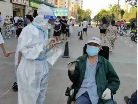 经开区青年志愿者们身穿防护服,在社区有序开展核酸检测人员信息登记扫码,帮助行动困难的老年人出行等志愿服务工作。