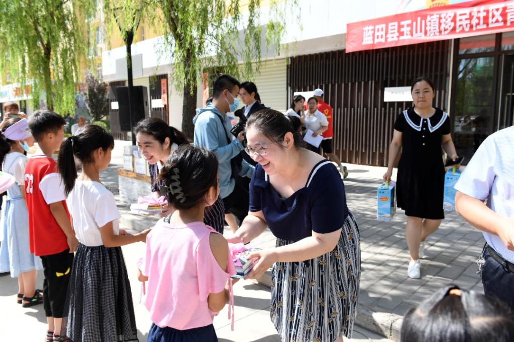 仪式上,团市委向蓝田县捐赠了价值8万元的小葵花微心愿,爱心机构为“希望小屋”捐赠了图书,与会领导一起为玉山镇移民社区的少年儿童赠送了图书和爱心物资。