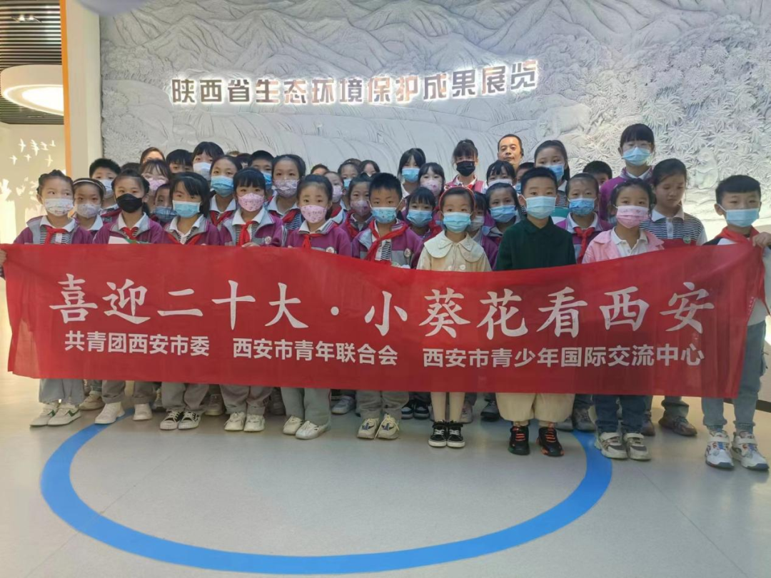 为了展示西安青少年文明有礼、朝气蓬勃、昂扬向上的良好形象,2022年9月30日,由共青团西安市委、西安市青年联合会、西安市少工委主办,共青团周至县委、陕西省环境保护宣传教育中心、西安汉堡王连锁餐厅、八路军西安办事处纪念馆、西安市青少年国际交流中心承办的“喜迎二十大·小葵花看西安”活动顺利开展,来自周至县金盆小学的40余名学生参与活动。