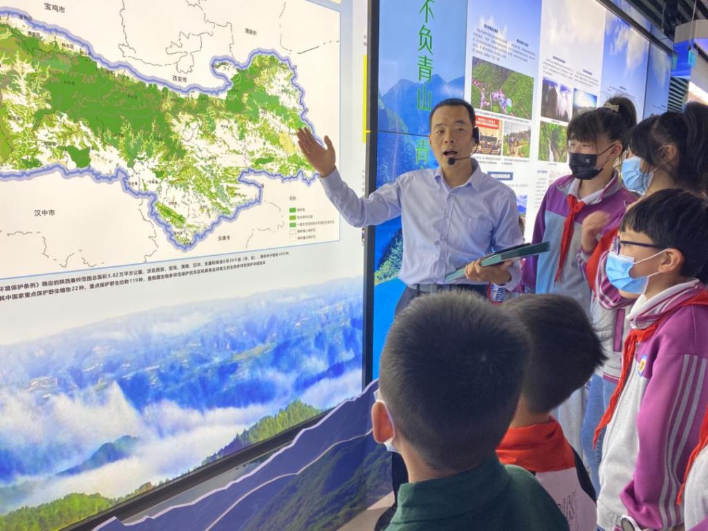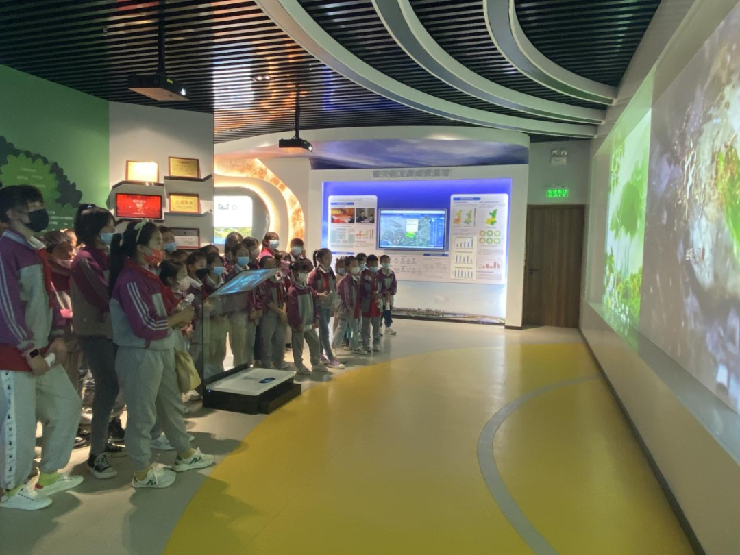早上,小葵花们来到陕西省生态环境保护成果展览厅。在这里,讲解员叔叔带大家一起回顾陕西省生态环境机构的历史沿革和发展壮大。让孩子们了解到我省生态环境保护事业从无到有、从弱到强、从小到大的历史性转变。讲解了陕西在保护秦岭、黄河、渭河生态环境方面采取的措施,让孩子们对家乡生态环境的改善有了更深入、更直观的了解。小葵花们在沉浸式体验厅观看陕西生态发展动画短片,从沧桑土地到蓝天绿水的逼真画面,一段段饱含发展与展望激情的语言里,深深体会到生态文明建设事业的攻坚克难历程与蓬勃发展前景。大家纷纷表示要在日常生活中节约用水、用电、纸张,践行绿色低碳生活,要带动爸爸妈妈和更多的人关注环保、参与环保,为建设天蓝、地绿、水清的美丽中国作出自己的贡献!