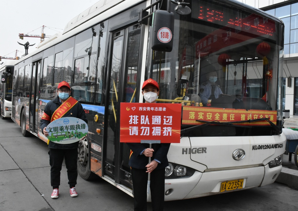 1月20日,团市委领导带队分别前往行政中心地铁站、西安城北客运站和公交车站看望慰问春运“暖冬行动”的青年志愿者,为他们送去问候和祝福。市交通运输局、市轨道集团、市公交集团等相关负责同志一同慰问。徐辉一行走访行政中心地铁站,与在岗志愿者亲切交谈,详细询问志愿者服务情况、了解志愿者的服务体会和感受并送上新春祝福。对志愿者们无私奉献和辛勤工作给予高度赞扬,并致以衷心的感谢。他叮嘱志愿者们在提升志愿服务质量的同时加强防护,同时鼓励志愿者们要继续弘扬“奉献、友爱、互助、进步”的志愿精神,为人民群众出行保驾护航,为助力万家团圆贡献青春力量。希望各级团组织、志愿服务组织要把志愿者的自身安全放在首位,充分做好志愿者培训、保障和服务工作,进一步加强对志愿者的人文关怀。