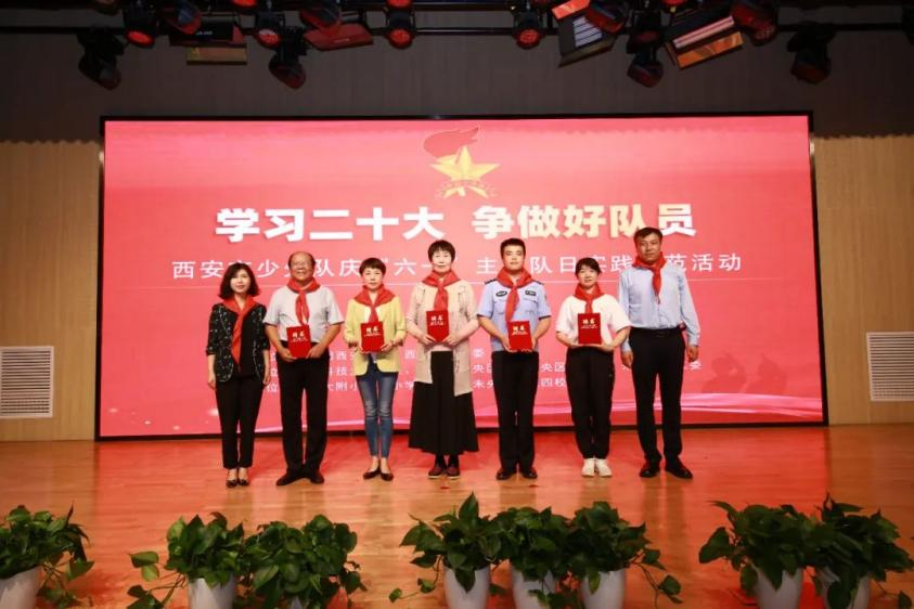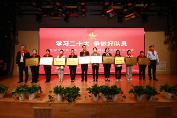 团市委副书记、市少工委主任尤婷宣读了《关于选树2023 年度“西安市优秀少先队员”“西安市优秀少先队辅导员”“西安市优秀少先队集体”的决定》。参加本次活动的来宾为优秀少先队大中队代表、辅导员代表、少先队员代表颁发了证书和奖牌。
