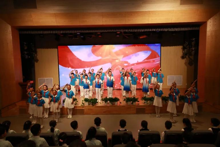 活动在响亮的少先队入队仪式号声中拉开序幕。伴随着雄壮有力的出旗曲,少先队员踏着整齐的步伐出队旗,敬队礼,迎党旗、团旗。高昂雄壮的少先队队歌响彻整个会场,队员们用嘹亮的歌声传达对党、先锋队的敬意和热爱。