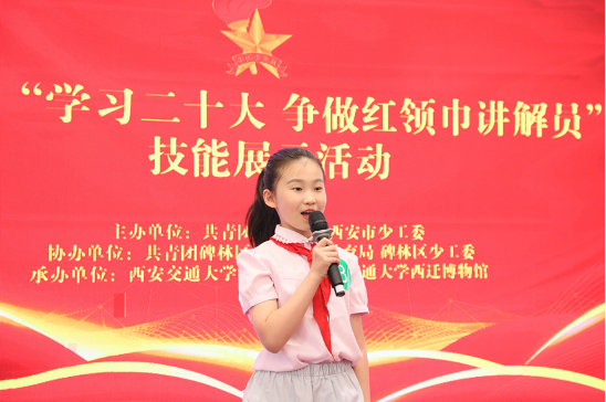 团市委副书记、市少工委主任尤婷,团市委学少部部长李尤,团碑林区委书记李佳维,团碑林区委挂职副书记蔺杰,西安交通大学附属小学党支部副书记戴宇飞以及22名红领巾讲解员参加了本次活动。