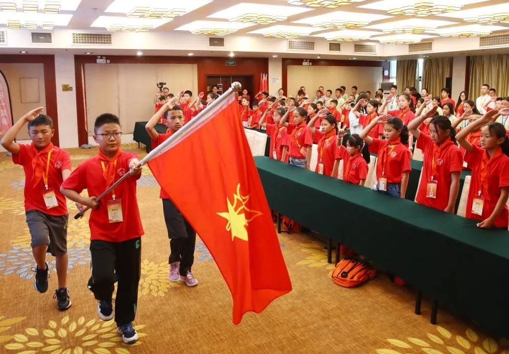 最后,在少先队大队辅导员的带领下,少先队员“时刻准备着”的呼号声铿锵有力,响彻现场。开营仪式在嘹亮的退队旗仪式中圆满落幕。