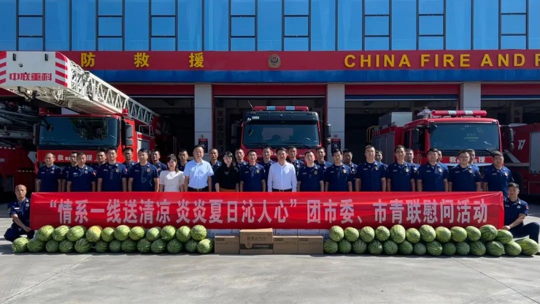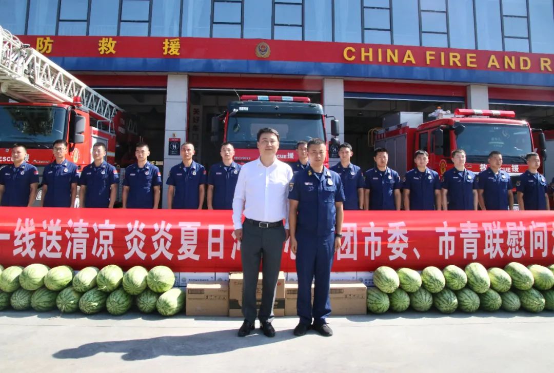 8月3日下午,团市委副书记高博赴西安市消防救援支队特勤大队一站看望慰问一线消防指战员,并送上由市青联筹措的矿泉水、西瓜和防暑降温药品。