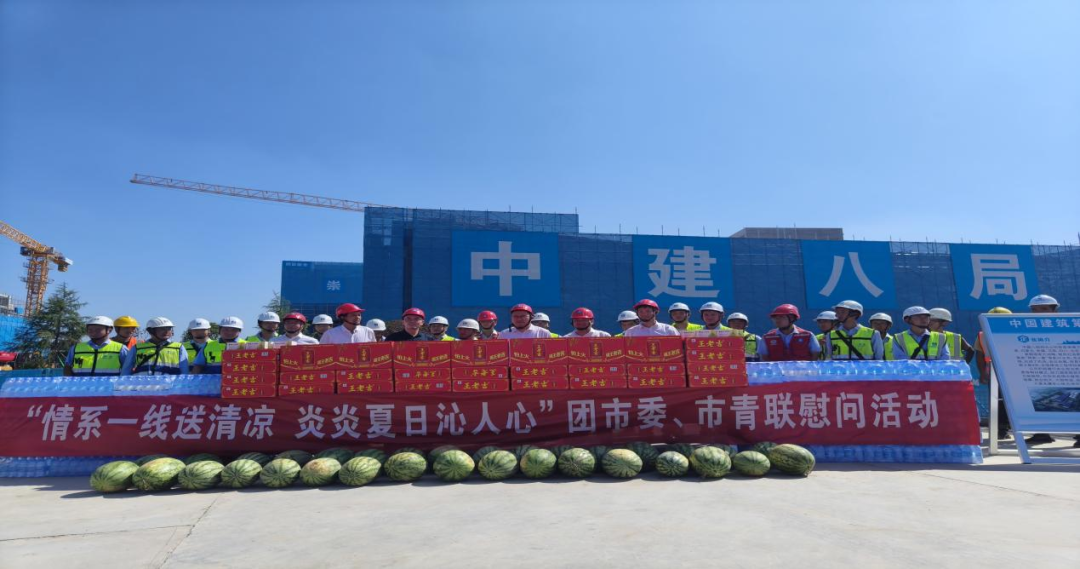 8月3日下午,团市委书记徐辉赴中建八局泾河绿能清洁能源产业发展中心(隆基中央研究院总部)项目、西安地铁10号线渭河公轨合建桥项目看望慰问重大项目一线青年工作者,送去矿泉水、西瓜、藿香正气水等价值万元的消暑物资。徐辉对广大青年职工不畏高温酷暑、紧抓生产建设的精神致以敬意,叮嘱大家在高温作业时注意防暑降温,团市委将竭诚为大家做好服务保障。