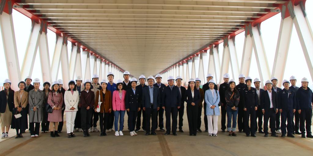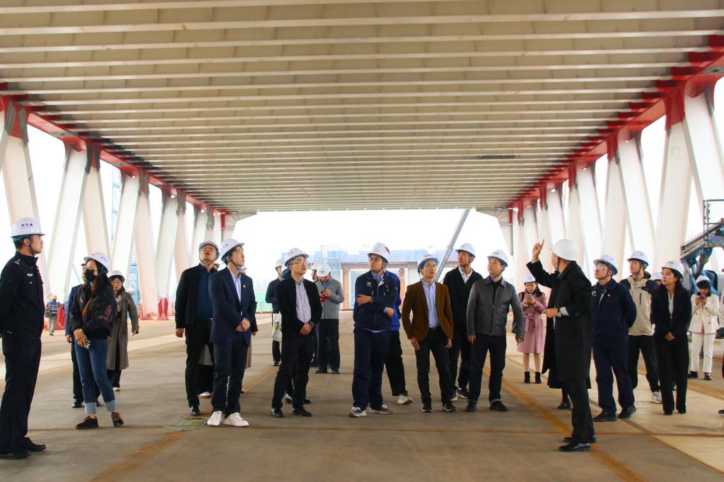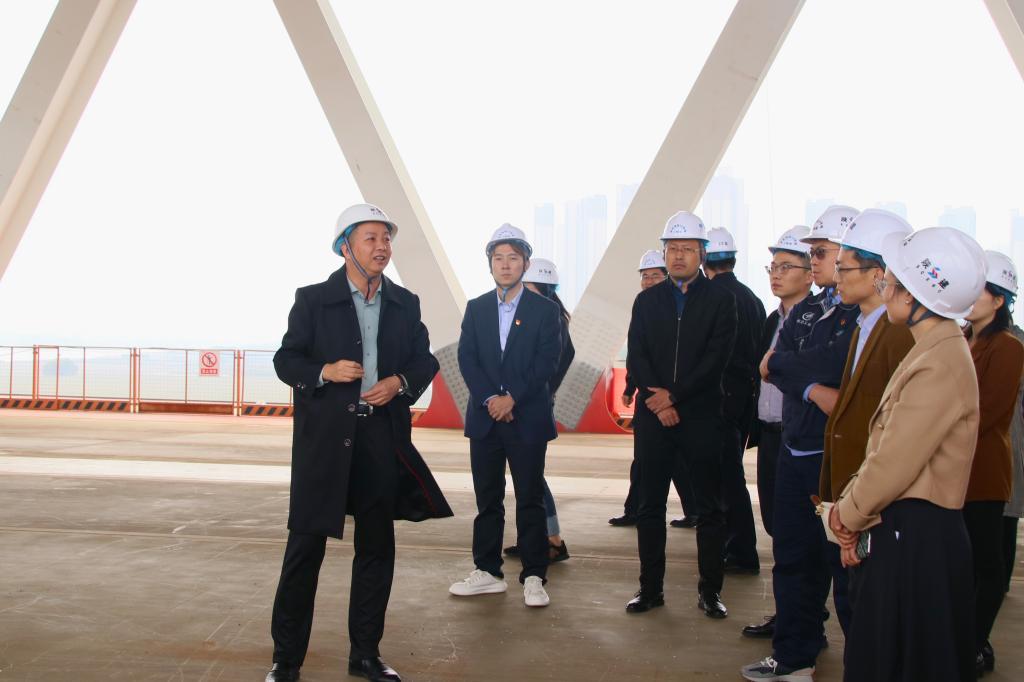 “西安青年五四奖章”参观团一行首先抵达由陕建机施集团承建的西安地铁10号线跨渭河公轨合建桥特大项目观摩交流。在工作人员的带领下,全体参观人员在项目展厅观看了多媒体沙盘和项目介绍视频,了解了公轨合建桥项目进展及地铁10号线工程概况。