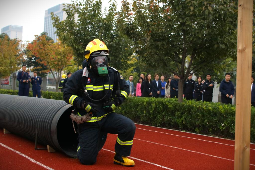 跟随着讲解员的脚步,参观团来到楼内营区参观干净的营区环境及整齐的个人内务,详细了解了特勤站的悠久历史和取得过的众多荣誉,以及先进模范的种种光荣事迹,辉煌的成绩让在场的每一名参观代表心生敬佩。最后,室外科目项目环节,大家观看了特勤站消防员日常的训练科目,娴熟的动作和规范的操作充分展现出了精湛的业务能力和过硬的综合素质,感受到了消防青年用实际行动践行的初心使命、用青春热血诠释的神圣职责。