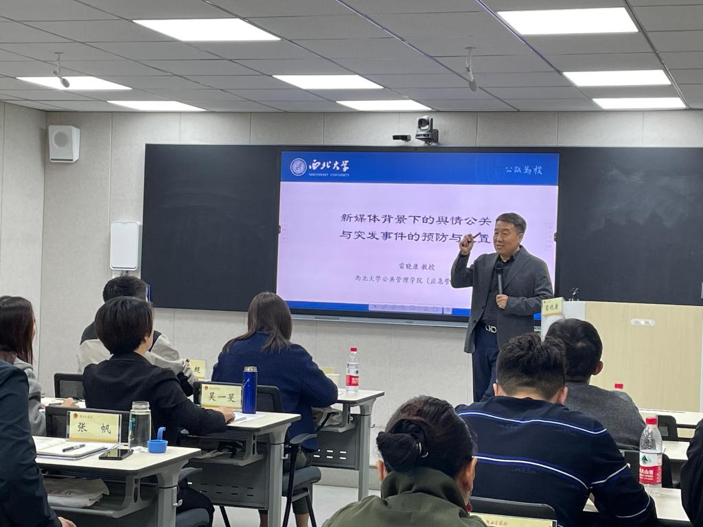 培训期间,先后邀请陕西科技大学党委宣传部部长、副教授李晓,陕西省委理论讲师团特聘专家、西北大学公共管理学院(应急管理学院)院长雷晓康,西北大学新闻传播学院副教授李洋,西安交通大学人文学院教授黎荔为参训学员们授课。