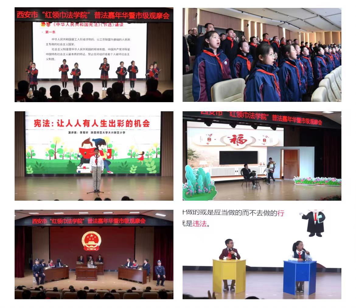 12月5日下午,“大力弘扬宪法精神 建设社会主义法治文化”西安市“红领巾法学院”普法嘉年华暨市级观摩活动在新城区幸福剧场顺利举办。第五批西安市“红领巾法学院”授牌学校代表、社区居民代表、师生代表等约200人参加活动。