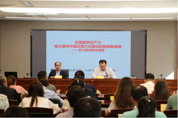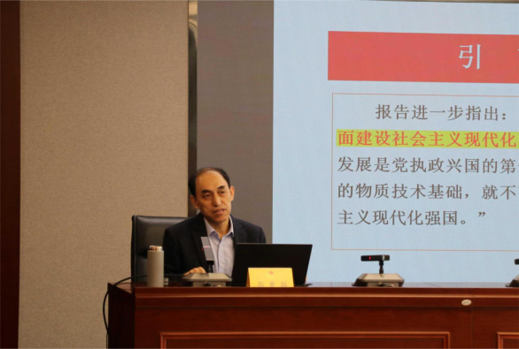 苗光新教授以《发展新质生产力,奋力谱写中国式现代化建设陕西新篇章》为题目做了内容充实的辅导宣讲,分别从发展新质生产力是推进中国式现代化的必然要求,陕西推进中国式现代化建设面临的机遇与挑战,如何加快培育新质生产力这三个方面进行了深入和系统的阐释。