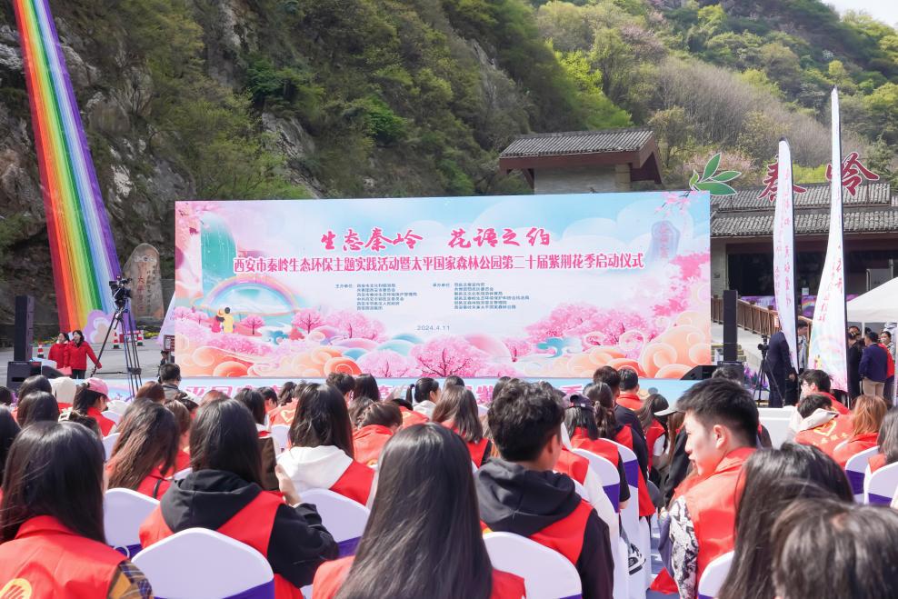 最是一年春好处,太平山上紫荆盛。4月11日上午,2024年西安市秦岭生态环保主题实践活动暨太平国家森林公园第二十届紫荆花季拉开帷幕。本次活动由西安市文化和旅游局、共青团西安市委员会、西安市秦岭生态环境保护管理局、中共西安市鄠邑区委区政府、西安旅游集团联合主办。西安市文化和旅游局二级巡视员余亚军、共青团西安市委员会副书记尤婷、西安市秦岭生态环境保护管理局法规宣传处处长黄进、西安市鄠邑区人民政府副区长吴宁超等领导出席活动,西安培华学院、西安明德理工学院、鄠邑区志愿者联合会、长安区青年志愿者协会及太平国家森林公园等200余名志愿者参与。