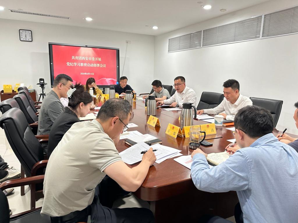 4月15日,团市委召开党纪学习教育启动部署会议,认真学习习近平总书记关于党纪学习教育的重要讲话和重要指示精神,传达学习中央党的建设工作领导小组会议和省委党的建设工作领导小组2024年度第一次会议、省委常委会会议暨党的建设工作领导小组会议,市委常委会会议暨党的建设工作领导小组会议精神,印发《共青团西安市委关于开展党纪学习教育的实施方案》,并对团市委机关及直属单位开展党纪学习教育工作进行了安排部署。