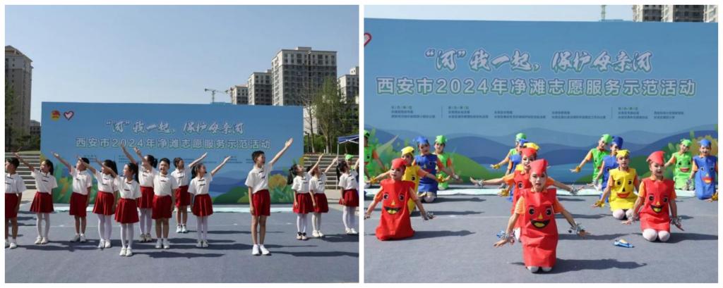 活动中,长安区第四小学学生带来了《大美长安颂》诗朗诵舞蹈秀,展现了孩子们理想中清澈美丽的长安生态环境。志愿者代表向广大青年志愿者发出倡议,要积极行动起来,争做绿色理念的传播者、生态环境的捍卫者和实践者,加入“保护母亲河·争当‘河小青’”的队伍,增强保护水源、保护河流的意识。