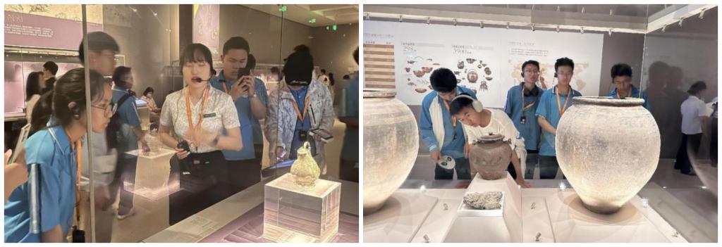 第二站,“小葵花”们来到了陕西历史博物馆。跟随着讲解老师进入陕西历史博物馆探访文物珍藏、解锁历史知识。“小葵花”们从先秦古韵展厅看起,接着参观了大汉雄风展厅、大唐盛世展厅、帝都展厅以及铜镜专题展厅,古代书画展厅、丝绸之路展厅、耀州瓷展厅等。数不胜数的国宝目不暇接,那精美绝伦的商周青铜器,千姿百态的历代陶俑,独步全国的汉唐金银器,精品荟萃,琳琅满目,“小葵花”们大开眼界,听得津津有味,增长了很多历史知识。