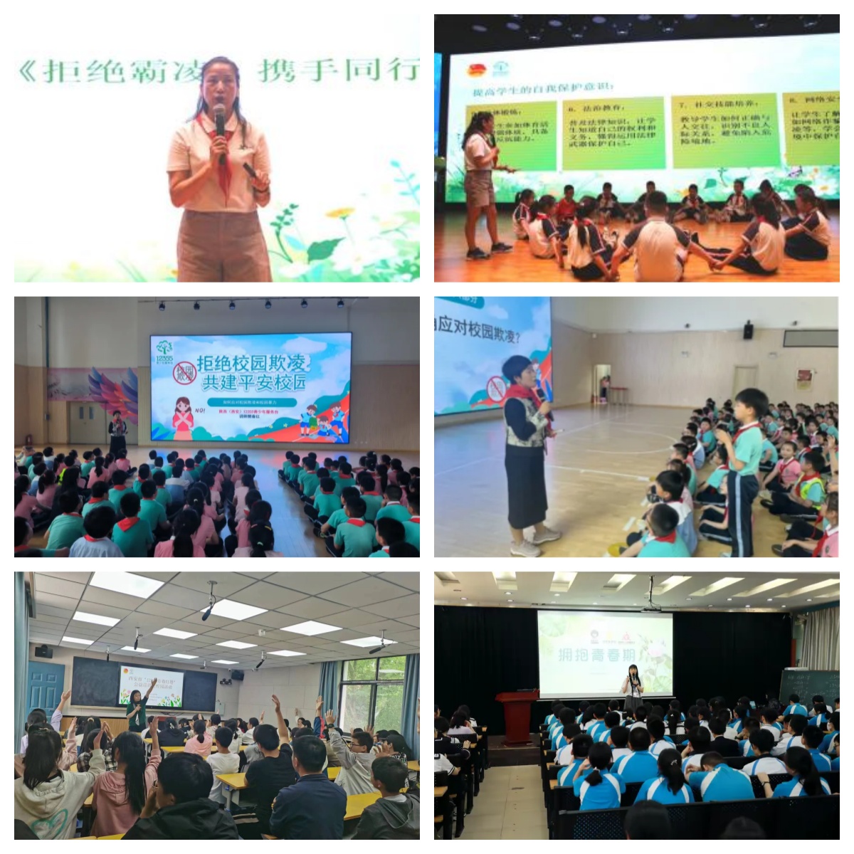 围绕青少年自护教育,在经开区第五小学、航天城第六小学、长安区引镇中心校、西咸新区大王东小学,“青春灯塔”讲师团成员马抒、刘撑国、张谊、徐红、王海霞、宋晓彤以“拒绝欺凌 携手同行”为主题,分别从“什么是校园欺凌”“校园欺凌的危害”“如何预防和应对校园欺凌”以及“如何做优秀好少年”等方面进行详细阐述,用通俗易懂、简单实用的法律知识,结合自身经验和真实案例,深刻阐述了校园欺凌事件对青少年的危害及对社会的恶劣影响,并与学生们进行互动提问,提高同学们自我保护能力。