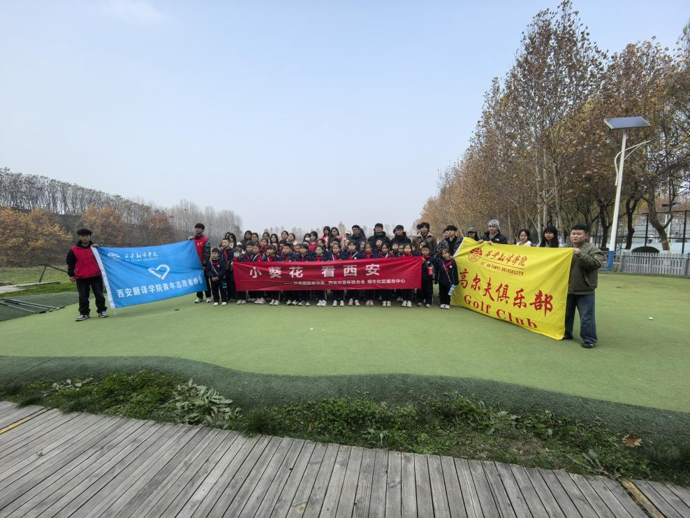 活动第二站,“小葵花”们来到了西安翻译学院。进入校园后,“小葵花”们感受着大学校园的学习氛围与文化气息,在期待与好奇的目光下,小葵花们来到了位于西安翻译学院西区的高尔夫球场。