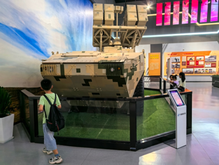 博物馆展台上陈列的轮式突击炮、新型自行加榴炮、远程火箭炮、履带式自行迫榴炮、激光末制导炮弹以及穿甲爆破弹等一系列大型兵器模型瞬间吸引了“小葵花”们的目光,让现场“小葵花”们为之震撼。讲解员声情并茂地讲解,使“小葵花”们深深地沉浸其中,徜徉在兵器知识的海洋里,纷纷感叹军事科技力量的强大!