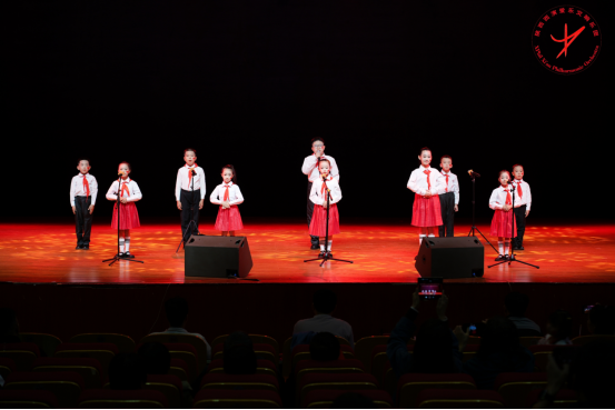 音乐会现场座无虚席,气氛庄重而热烈。一曲《歌唱祖国》拉开序幕,激昂熟悉的旋律瞬间点燃全场,汇聚成炽热的爱国情怀,在剧场中回响激荡,久久不息。随后,陕西西演爱乐交响乐团的艺术家与青年学子相继登台,倾情演绎——《走向复兴》奏出奋进的豪情,《强军战歌》回荡强国的信念,动人乐章中映照着祖国山河的壮丽与奋斗征程的辉煌;《灯火里的中国》以温暖旋律描绘新时代中国的幸福图景;儿童朗诵团带来的《我喜欢红色》配乐朗诵,以稚嫩而坚定的声音,传递出新时代少年对祖国最纯真的热爱与忠诚。特别值得一提的是,在9月3日纪念中国人民抗日战争暨世界反法西斯战争胜利80周年大会上首演的力作《光荣奔赴》,由解放军联合军乐团的老师现场奏响,以恢宏乐章诠释“光荣”的深意,以铿锵旋律展现“奔赴”的姿态,为全场观众带来一次深刻的精神洗礼。