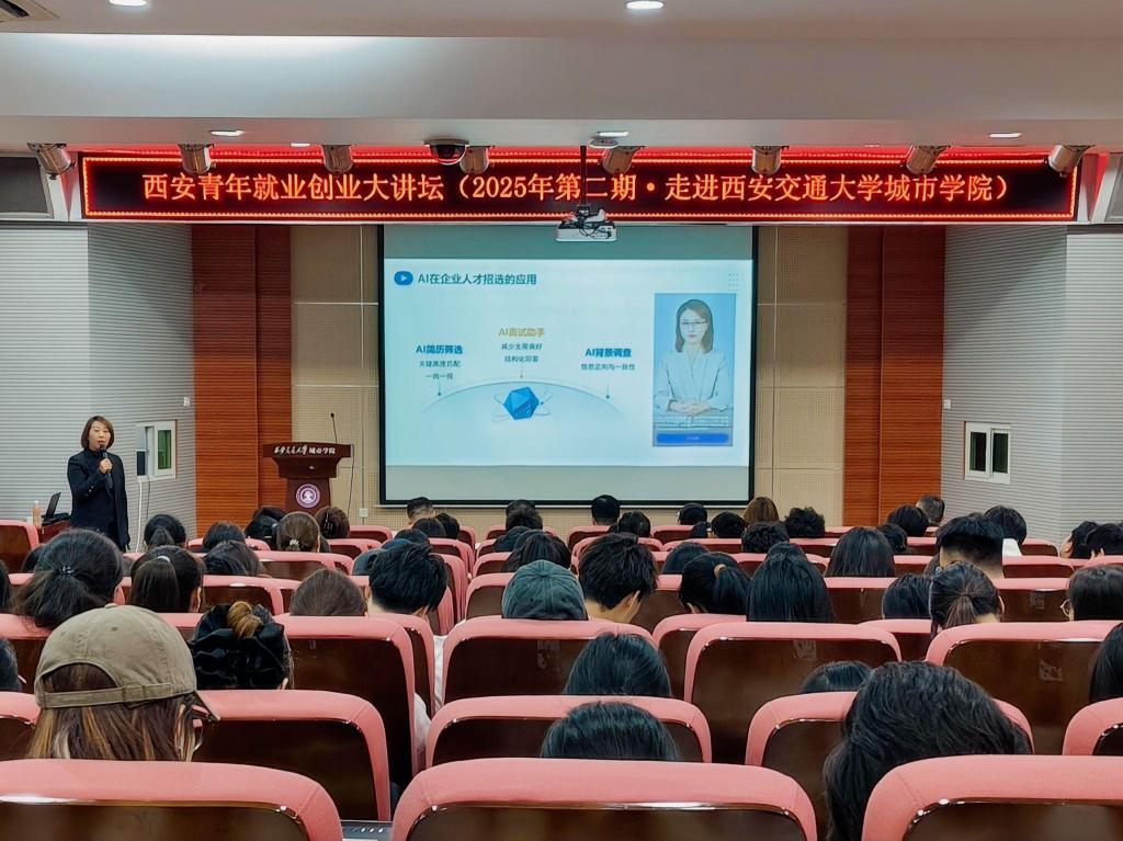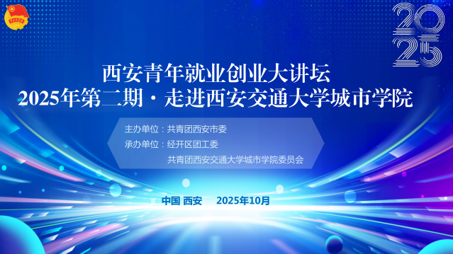 为赋能青年学子把握AI时代就业创业机遇,树立职业规划理念,明晰职业发展方向,切实提升就业创业能力,10月16日,由共青团西安市委主办,经开区团工委、共青团西安交通大学城市学院委员会承办的“西安青年就业创业大讲坛(2025年第二期)”在西安交通大学城市学院成功举办,160余名在校大学生参与培训,沉浸式汲取就业创业知识。