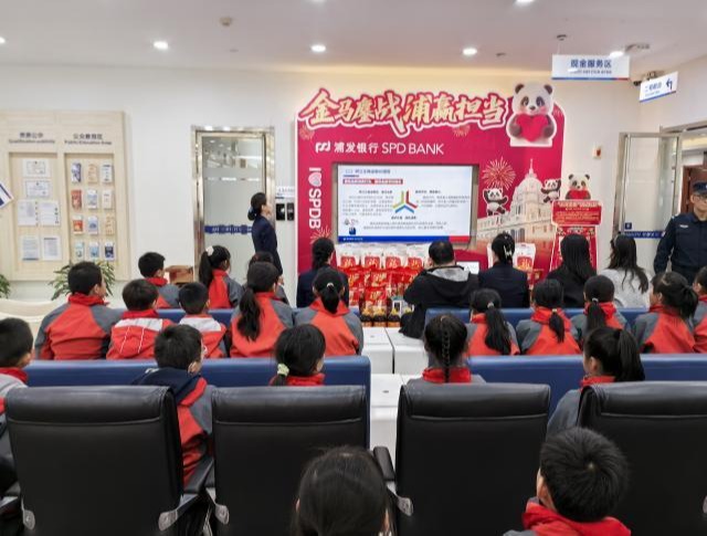 活动第一站,“小葵花”们以研学实践的方式来到浦发银行长乐路支行开展了一场生动的课外实践活动。