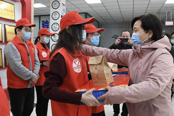区政府有关领导勉励大学生志愿者,值此年关将近各位志愿者们依然坚守在火车站广场、街道社区一线防疫工作中,在协助开展社区疫情值守、防疫宣传等工作中发挥了关键作用。感谢大家在寒假休息时间选择参与到新城区一线防疫工作中,正是因为你们辛勤的付出,新城区的防疫工作扎实有效,为大家的这种精神“点赞”。