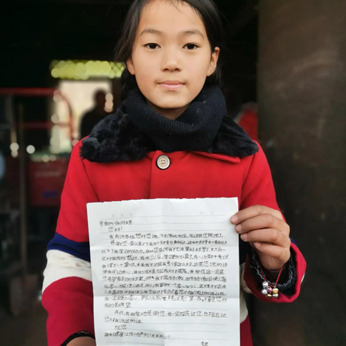 蓝田青少年公益服务中心志愿者前往普化镇为品学兼优的“小葵花”送去了爱心人士捐赠的棉衣,“小葵花”也用自己稚嫩的文字表达了对爱心人士的感谢!