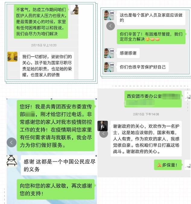 今年2月起,为了免去防疫一线医务人员的后顾之忧,让他们放下牵挂,心无旁骛地做好一线防疫工作,按照市疫情防控指挥部统一安排,团市委专门组建了30名正式干部组成的党员先锋队,与365个医护家庭一一结对,与每个家庭一一电话联络,向他们致敬,并问询他们的生活现状,了解他们的实际需求。进一步形成了一对一帮扶、物资帮办、心理辅导、在学子女学业辅导等六项具体工作措施,广泛动员全市团员青年志愿者共同参与,及时有效为一线医务人员解除后顾之忧。
