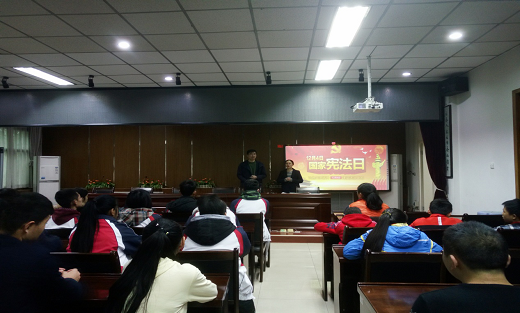 为了增强法律意识,强化法律观念,使每位同学都能自觉弘扬宪法精神,做知法守法小公民。11月7日,校团委组织全体团员在我校二楼会议室开展了 “12·4——国家宪法日”法制宣传活动。