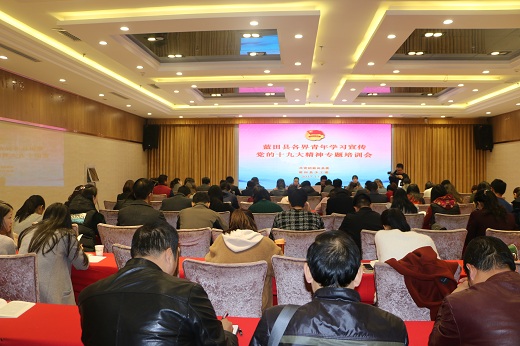 11月8日上午,蓝田县委、县少工委组织召开蓝田县各界青年学习宣传党的十九大精神专题培训会,会议由团县委书记主持,全县各界青年代表、各级团干部、少先队辅导员约100人参加培训会。