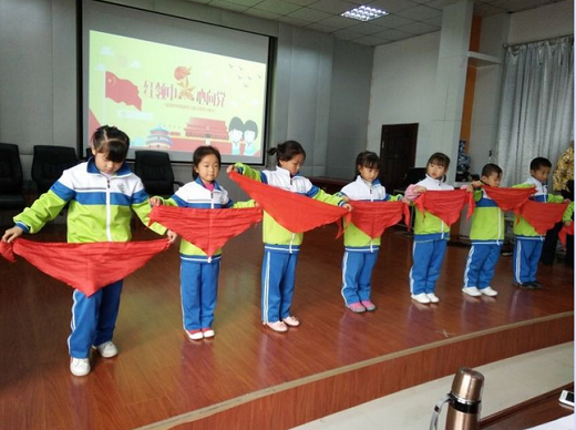 今天,党把红旗化作千万条红领巾,让每个少先队员佩戴在胸前,就是要求少先队员继承红旗事业,就是要让革命精神代代相传。五四中队带来的诗朗诵《飘扬的红领巾》让在场的所有少先队员们心中充满了骄傲和自豪。