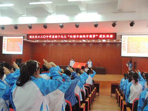 为纪念中国少年先锋队建队68周年,六三〇中学10月13日下午组织七年级学生在学校报告厅开展了少年先锋队建队日活动。