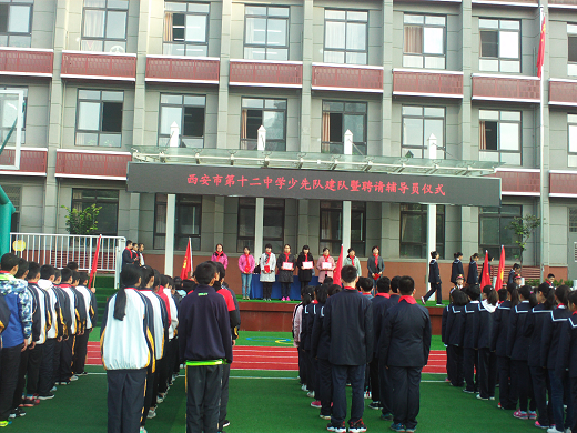 为激励广大少先队员继承和发扬少先队的光荣传统,增强光荣感和使命感,更好的发挥少先队的教育作用。碑林区第十二中学少先队大队部于2017年10月12日上午,早操早读时间初一初二全体师生在学校操场隆重集会,举行了少先队建队暨聘请辅导员仪式。