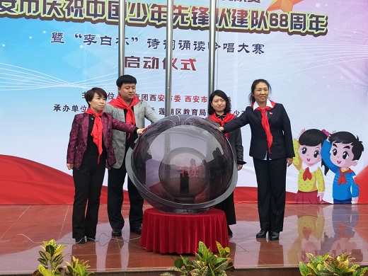 10月13日上午,莲湖区委承办的西安市庆祝中国少年先锋队建队68周年暨2017丝绸之路国际青少年风采大赛“李白杯”诗词诵读吟唱大赛在莲湖区机场小学举办。团市委副胡书记、团市委学少部吴部长、莲湖区委王书记同志参加活动。