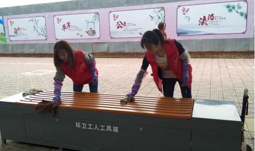 另一部分志愿者们则对沿街门窗、垃圾箱、墙面等进行擦洗。在大家的共同清理下,城市变得亮丽一新。