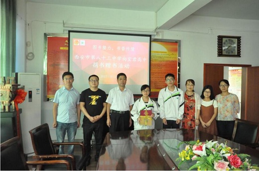 2017年9月20日下午,西安市第八十三中学在图书科技楼二楼会议室举行了“图书接力,书香传情”向铜川市宜君高中赠书活动仪式。我校教师代表、学生代表与宜君高中教师代表汇聚一堂,校党总支书记参加了此次活动。 此次活动是由西安市第八十三中学校团委发起的在高三年级理科班级里进行的历史教科书捐赠活动。自活动倡议以来,学生们踊跃参与,共收集书籍近200本。通过捐书活动,西安市第八十三中学学生的旧书将会发挥有效的利用,而宜君高中学生将通过岳麓版本的历史书,感受到历史的趣味。