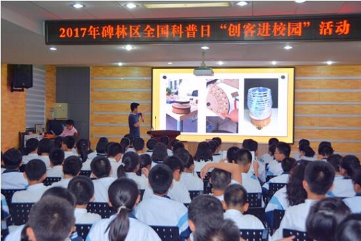 为提高附中青少年科学文化素质水平,把科学知识、科学方法、科学精神传递给学生,2017年9月19日下午,建大附中邀请到中国青少年创客大赛的发起单位之一——指尖新空间,开展了“创客进校园”活动。
