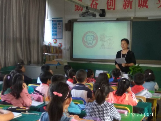 校医张老师给同学们做了关于爱牙护齿的专题知识普及。根据学生的年龄特点,结合播放生动形象的动画PPT,向孩子们详细地讲解牙齿的结构、作用,介绍爱护牙齿的重要性以及如何保护牙齿的方法。教孩子们掌握正确的刷牙方法,使小朋友们懂得爱护牙齿,要从小做起,要养成每天早晚刷牙、饭后漱口,临睡前不吃零食、要多吃水果蔬菜、五谷杂粮,少吃甜食、零食等牙齿保健常识。