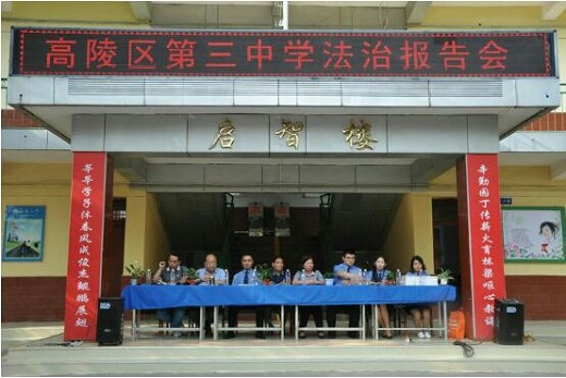 为了推进平安校园建设,构建和谐校园,进一步加强对学生的法制教育,增强学生的法律意识,增强自我保护能力,有效预防校园欺凌事件发生,高陵区多部门联合开展“法律进学校 护航未成年”为主题的法治教育活动。 活动由普法工作志愿者队伍给高陵区第三中学师生作普法教育专题报告。青年民警针对在校学生年龄特点,通过典型案例分析,重点讲解了易发性校园安全事故有关法律法规知识。并以“反恐怖主义”和“反邪教”为主题,介绍了恐怖主义和邪教组织的危害性以及如何抵御不良思想的侵蚀,教育和引导广大青少年崇尚科学、提倡文明、反对邪教。法制工作志愿者分别以“未成年人相关法律”、“青少年常见犯罪情形”、“如何预防犯罪”为主题,通过典型案例分析,运用通俗易懂的语言为1500余名师生作了一堂生动的法制教育报告会。普法宣讲上学生们踊跃提问,讲师们精彩作答,活动现场气氛热烈。