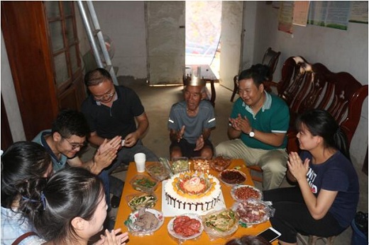 8月11日,临潼团区委机关干部来到临潼区穆寨街办杨南湾村为帮扶对象五保户老人过生日。