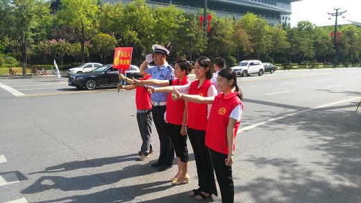 8月9日上午,市国土局联合市直机关工委,组织30余名国土青年志愿者,在凤城八路与文景路十字路口等车流量、人流量较大路段,在上班高峰期,开展文明交通“车让人”志愿服务活动。