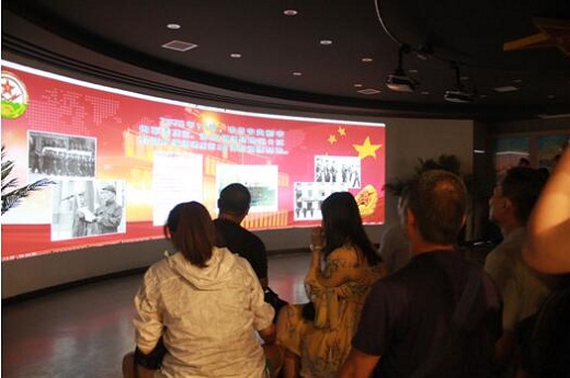 在部队工作人员的统一组织下,社区党团员们参观了西安卫星测控中心63751部队的史馆,观看了纪录片及测控设备,并听取了情系航天事业的优秀官兵的事迹报告,最后与官兵合影留念。