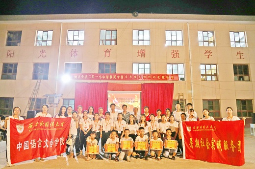 7月21日晚,2017西安外国语大学枫火暑期赴周至社会实践团与铸才中学携手举办了以“团旗飘扬心向党,青春唱响梦飞扬”为主题的红歌比赛。出席本次活动的有铸才中学部分领导老师以及枫火实践团全体成员。担任本次主持的是枫火实践团成员。