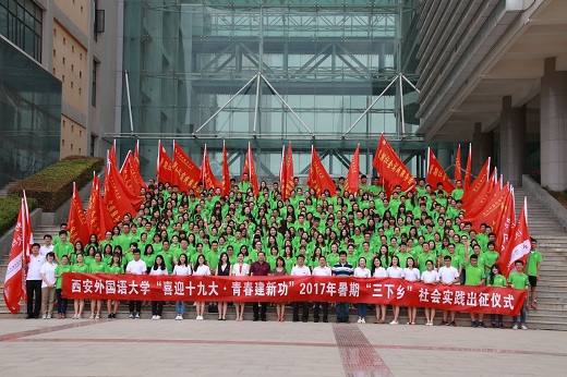2017年7月11日上午,西安外国语大学青年志愿者总队赴周至社会实践团出征仪式在西安外国语大学长安校区举行。带队教师以及社会实践团成员等25名队员参加了活动。