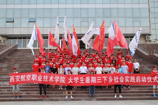 为深入贯彻落实全国高校思想政治工作会议精神,学习领会习近平总书记系列重要讲话精神,特别是考察中国政法大学重要讲话精神以及关于青年成长成才的一系列重要论述,为陕西追赶超越贡献智慧和力量,西安航空职业技术学院团委将在暑期组织以“全力精准扶贫,以青春新功喜迎十九大”为主题的2017年暑期文化科技卫生“三下乡”社会实践活动。7月4日下午,活动启动仪式在实训楼广场隆重举行。学院党委副书记、纪委杨书记、电子工程学院周书记、计算机工程学院宋书记,院团委李书记,各实践队伍成员以及带队老师参加了本次活动。