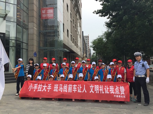 近日,碑林区东厅门小学学生代表们与开通巷社区的工作人员一起走上街头,开展"礼让斑马线·红领巾为你点赞"活动。