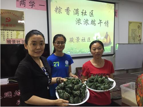 骏景社区团支部以”粽香满社区、浓浓端午情“为主题组织辖区居民开展包粽子比赛、评选优秀、赠送香粽、传递爱心活动,共计赠送香粽至高龄老人、困难家庭30余份。